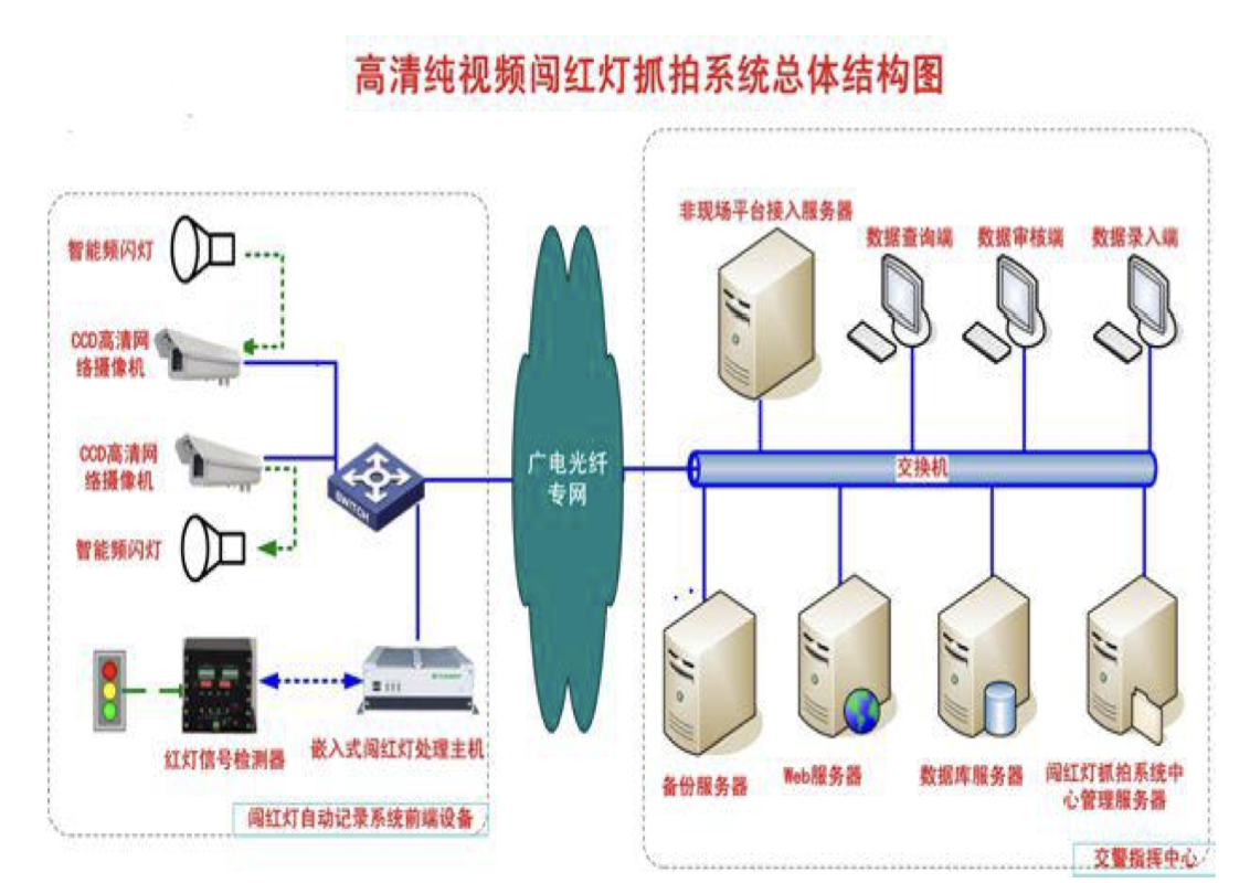 建設以純視頻檢測、高清抓拍和車牌號自動識別為核心的智能電子警察系統。該系統的建成將實現對道路交通相關區域的實時監控,對違章行為、違反標志標線行為進行自動記錄取證,滿足交通管理人員對道路交通管理和監控的需求。