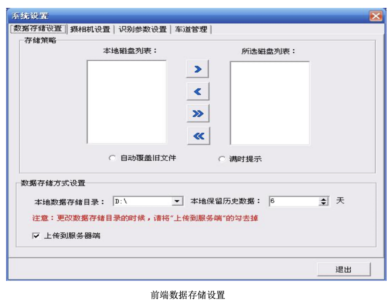 a)存儲設置。設置本地存儲,包括:當前存儲目錄、本地可用磁盤、存儲天數、磁盤策略等。可以選擇將數據上傳到中心服務器。
