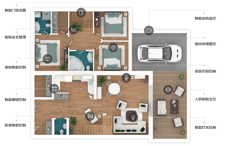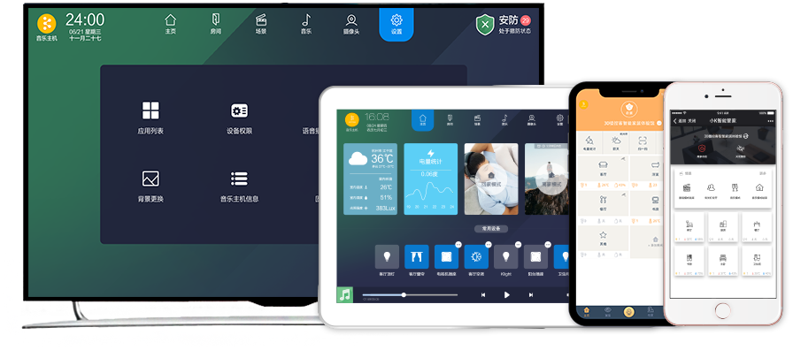 智能家居通過無線技術(shù)將家中電器設(shè)備聯(lián)網(wǎng),從而實現(xiàn)各種全屋智能場景。讓你或者家人通過簡單的一個動作或者一句話即可自動操作家中不同設(shè)備。遠離家中繁瑣,科技解放生活。更便捷、簡單、安全、聰明的智能家居,智能生態(tài)系統(tǒng)設(shè)計的智能交互型應(yīng)用平臺,擁有手機APP、手機微信、平板PAD、電視TV四大控制方式。