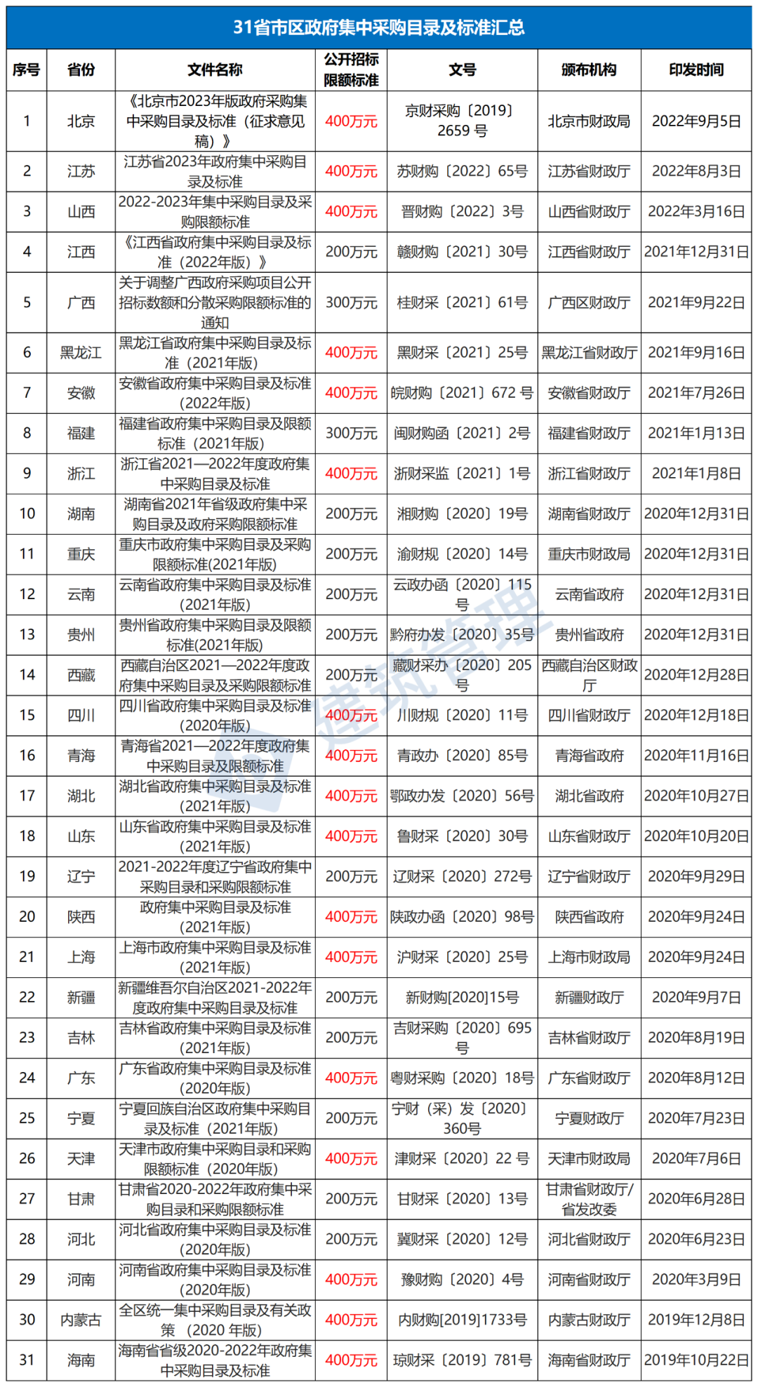 以下為除港澳臺外31個省最新采購政策匯總。