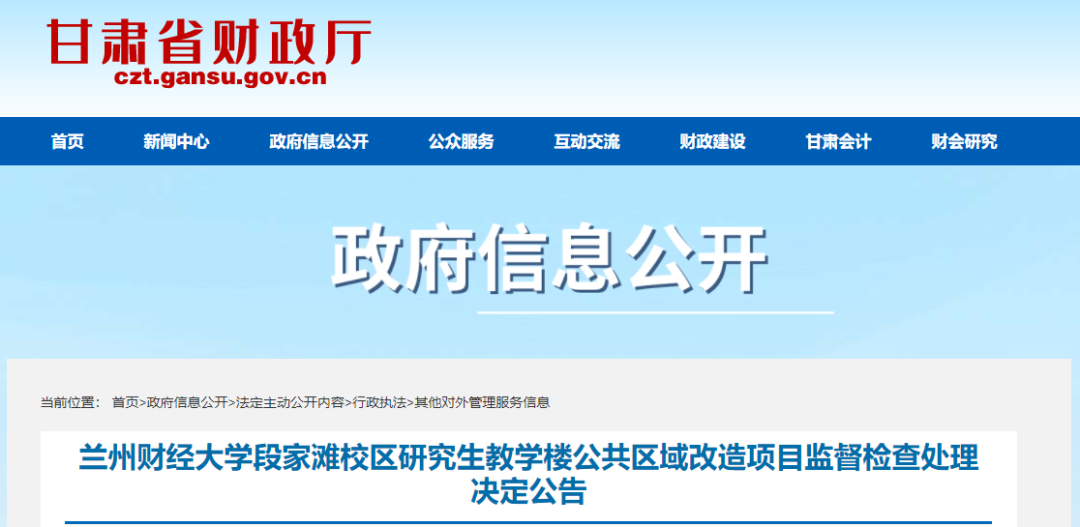我機關依法對2022年6月22日收到的對“蘭州財經大學段家灘校區研究生教學樓公共區域改造項目”采購文件的舉報進行了監督檢查。